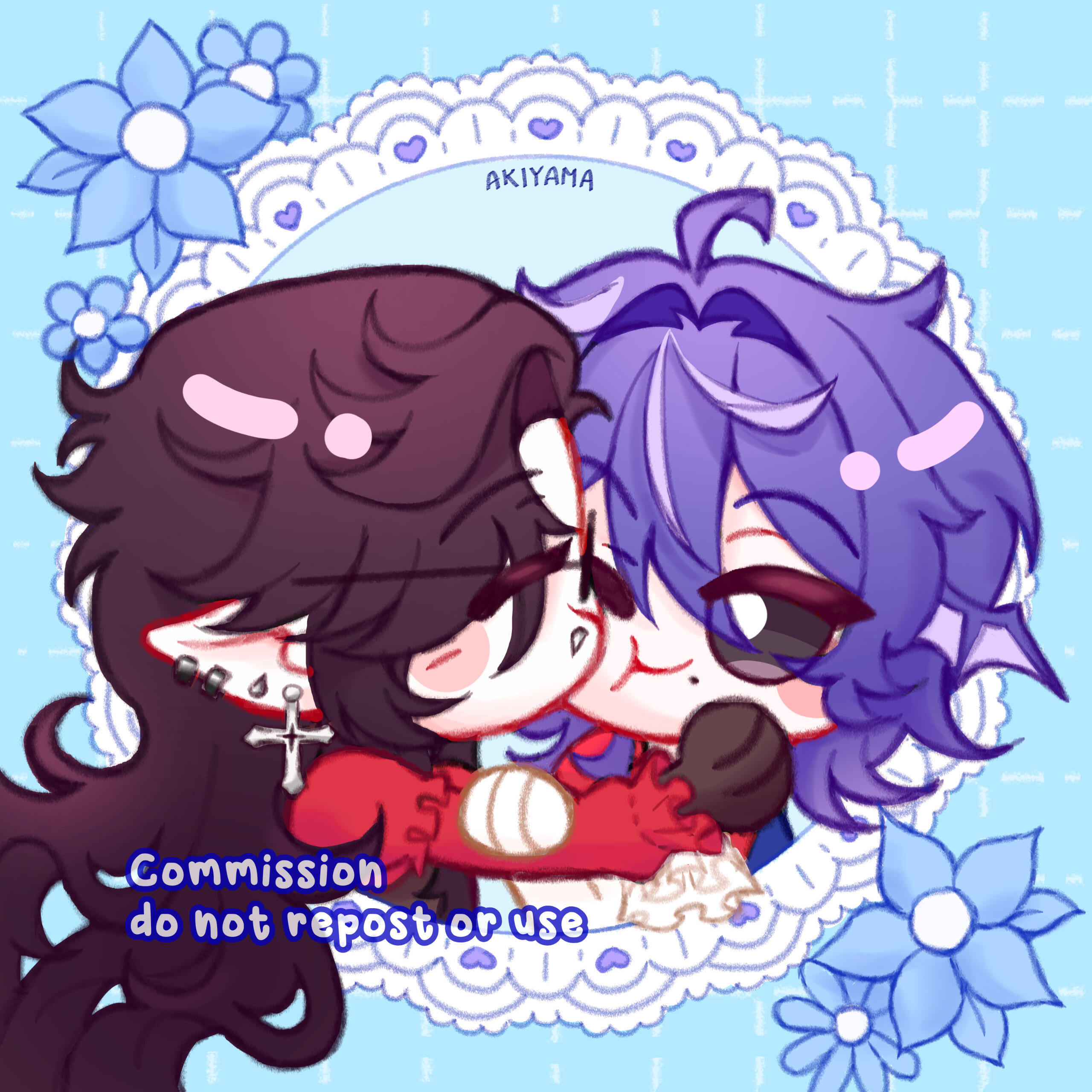 Commissions are for personal use, not claim them as your own or use them for commercial purposes, either by reselling it in merchandise, among other forms of income.. You can use it without problem as a profile picture, banner, etc. but always give me the respective credits. In case that you want it for commercial use, then a 100% extra will be charged.COMMUNICATION